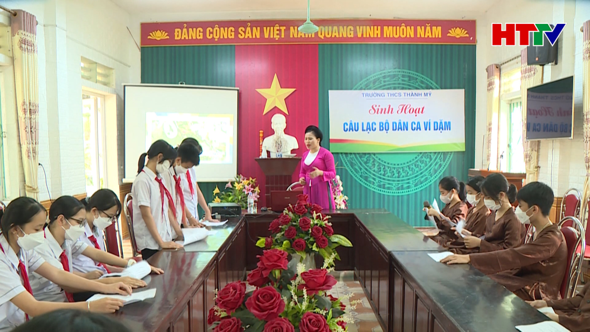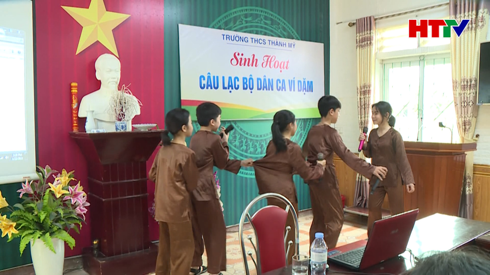Một buổi sinh hoạt CLB Dân ca ví, giặm của cô trò trường THCS Thành Mỹ, huyện Nghi Xuân. Dưới sự dẫn dắt của cô giáo, những em học sinh dù ở độ tuổi còn rất nhỏ đã say sưa, thành thục trong từng làn điệu, từng tổ khúc dân ca.