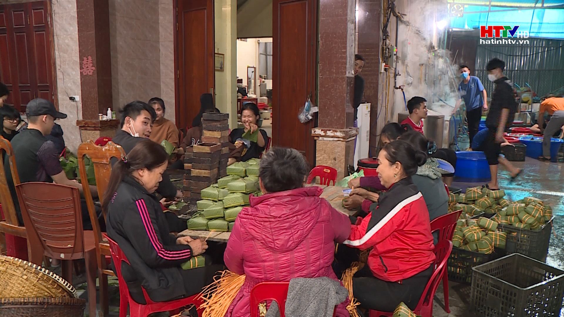 Chỉ mới đầu buổi sáng nhưng các thành viên trong tổ bánh chưng của Khách sạn Công đoàn, thành phố Hà Tĩnh đã gói đến mẻ bánh thứ 3. Nếu như những ngày thường, cơ sở chuẩn bị nguyên liệu vào buổi sáng gói bánh vào buổi trưa và luộc bánh vào buổi chiều thì trong những ngày cận Tết, các công đoạn được làm nối tiếp nhau để kịp thời phục vụ nhu cầu của khách hàng.