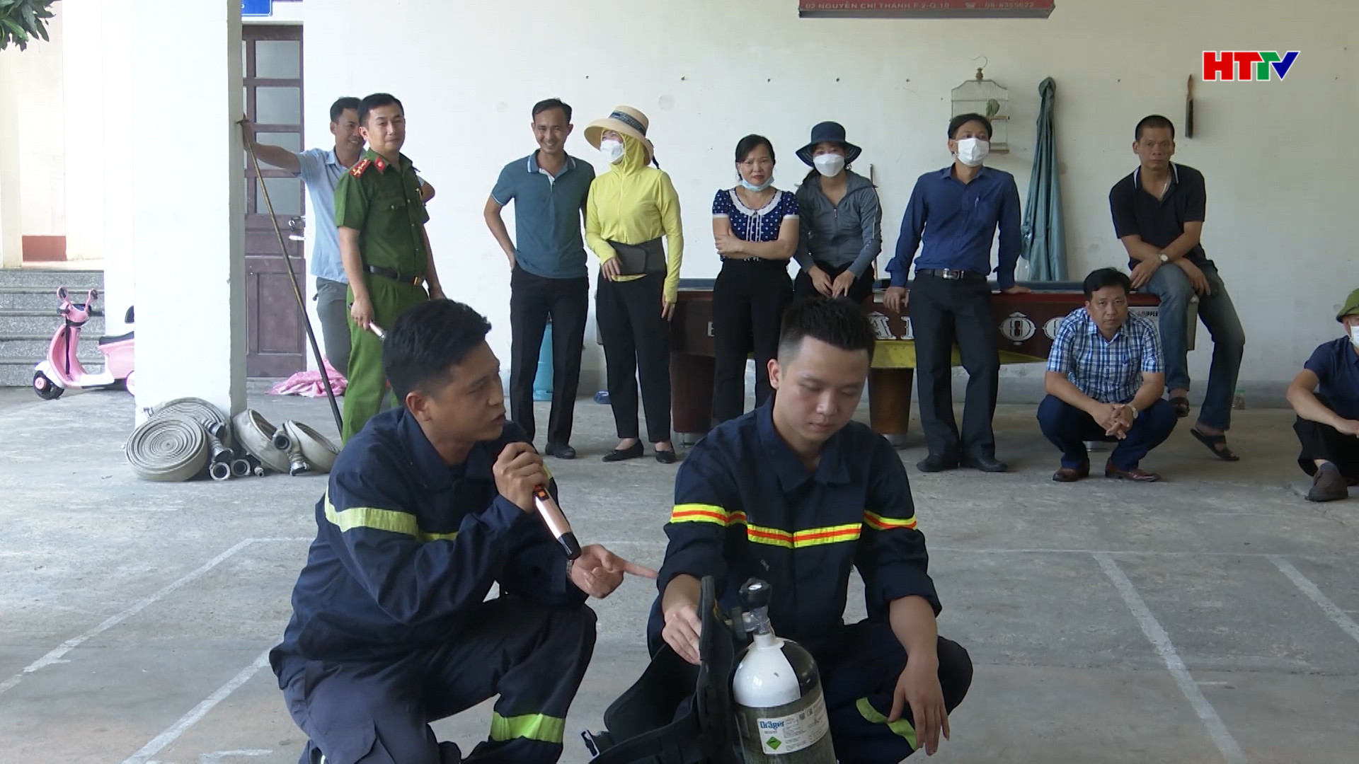 Cán bộ, giáo viên Hồng Lĩnh huấn luyện phòng cháy chữa cháy