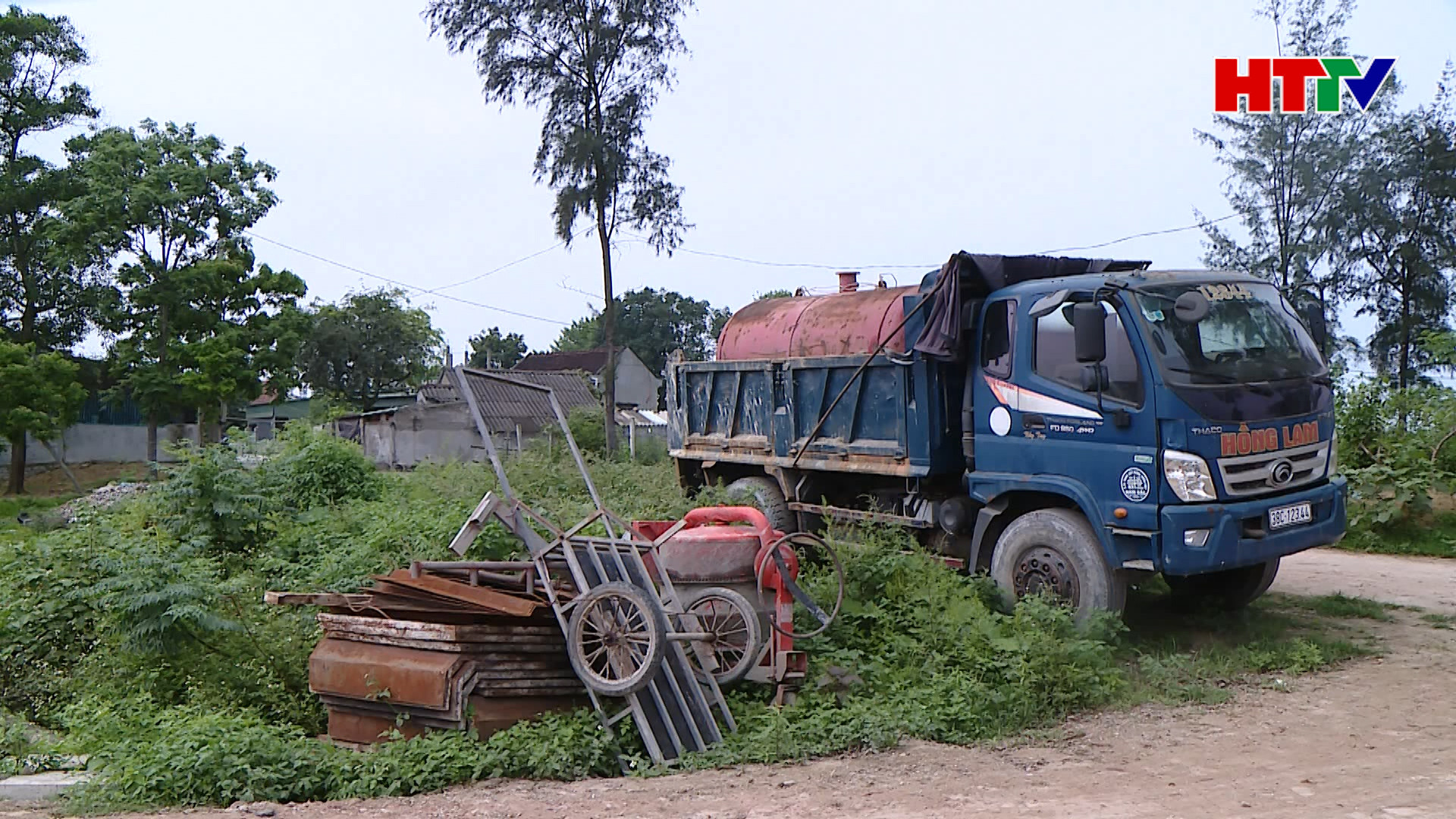 Thời tiết thuận lợi nhưng trên công trường Dự án hạ tầng ngoài hàng rào Cụm công nghiệp Thạch Bằng tại thị trấn Lộc Hà, huyện Lộc Hà máy móc, phương tiện đều phải nằm chờ, phơi nắng phơi mưa vì đơn vị thi công không có mặt bằng sạch để làm.