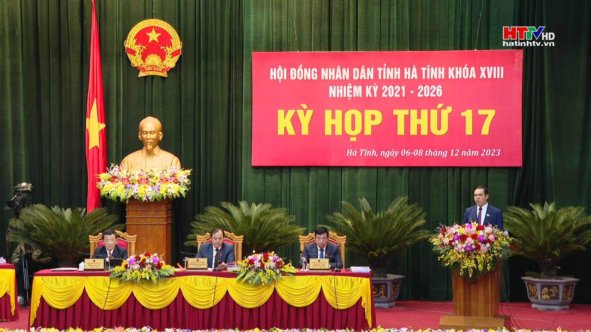 Sáng nay (08/12), Kỳ họp thứ 17, HĐND tỉnh khoá 18 bước sang ngày làm việc thứ 3. Đồng chí Hoàng Trung Dũng - Uỷ viên Trung ương Đảng, Bí thư Tỉnh uỷ, Chủ tịch HĐND tỉnh; đồng chí Trần Tú Anh - Phó Chủ tịch Thường trực HĐND tỉnh và đồng chí Trần Văn Kỳ - Phó Chủ tịch HĐND tỉnh chủ trì và điều hành kỳ họp.