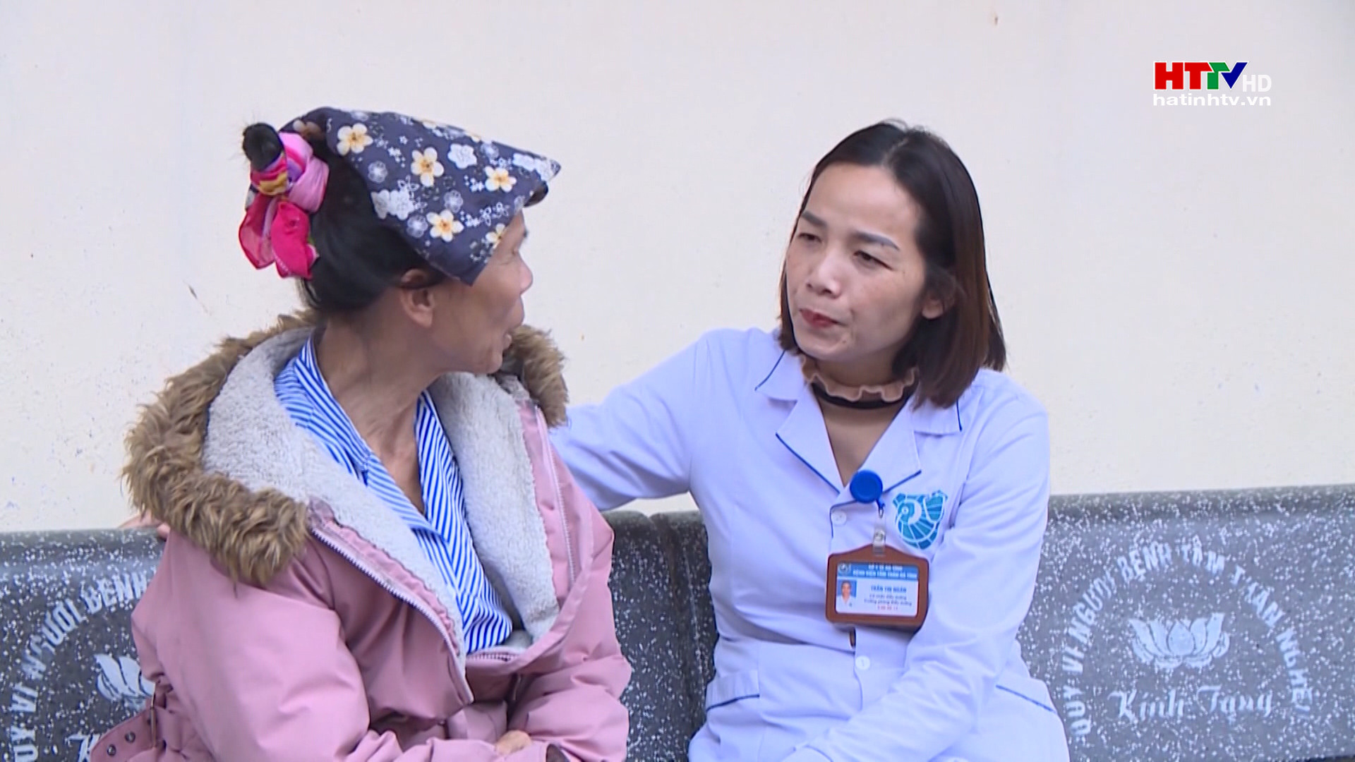 Bà Trần Thị Hồng Ngân - Trưởng phòng Điều dưỡng, kiểm soát nhiễm khuẩn, Bệnh viện Tâm thần Hà Tĩnh chuyện trò với bệnh nhân