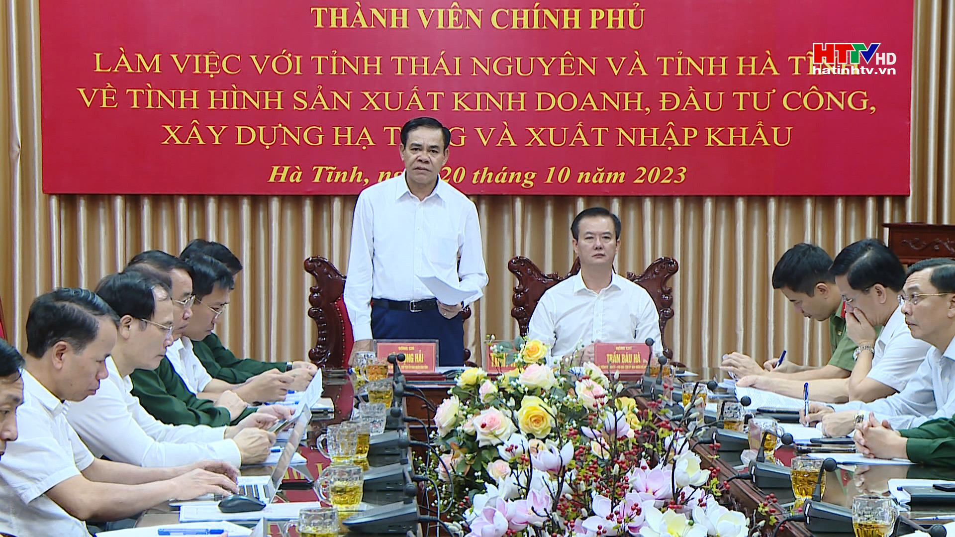 Hà Tĩnh đề nghị các bộ, ngành tiếp tục quan tâm hỗ trợ tỉnh trong quá trình thực hiện các nhiệm vụ về sản xuất kinh doanh, đầu tư xây dựng, xuất nhập khẩu. Nghiên cứu, bổ sung, hướng dẫn rõ hơn các quy định liên quan đến quy hoạch; đặc biệt, kiến nghị Chính phủ sớm có phương xử lý dự án khai thác mỏ sắt Thạch Khê và giải quyết vướng mắc liên quan đến thủ tục pháp lý hạ tầng Khu công nghiệp Phú Vinh. Tại buổi làm việc, lãnh đạo các bộ, ngành liên quan đã trả lời từng kiến nghị cụ thể của 2 tỉnh Hà Tĩnh, Thái Nguyên.