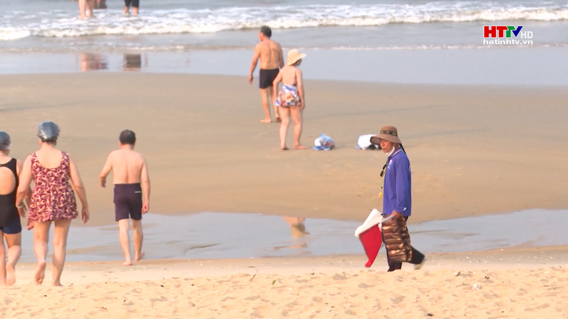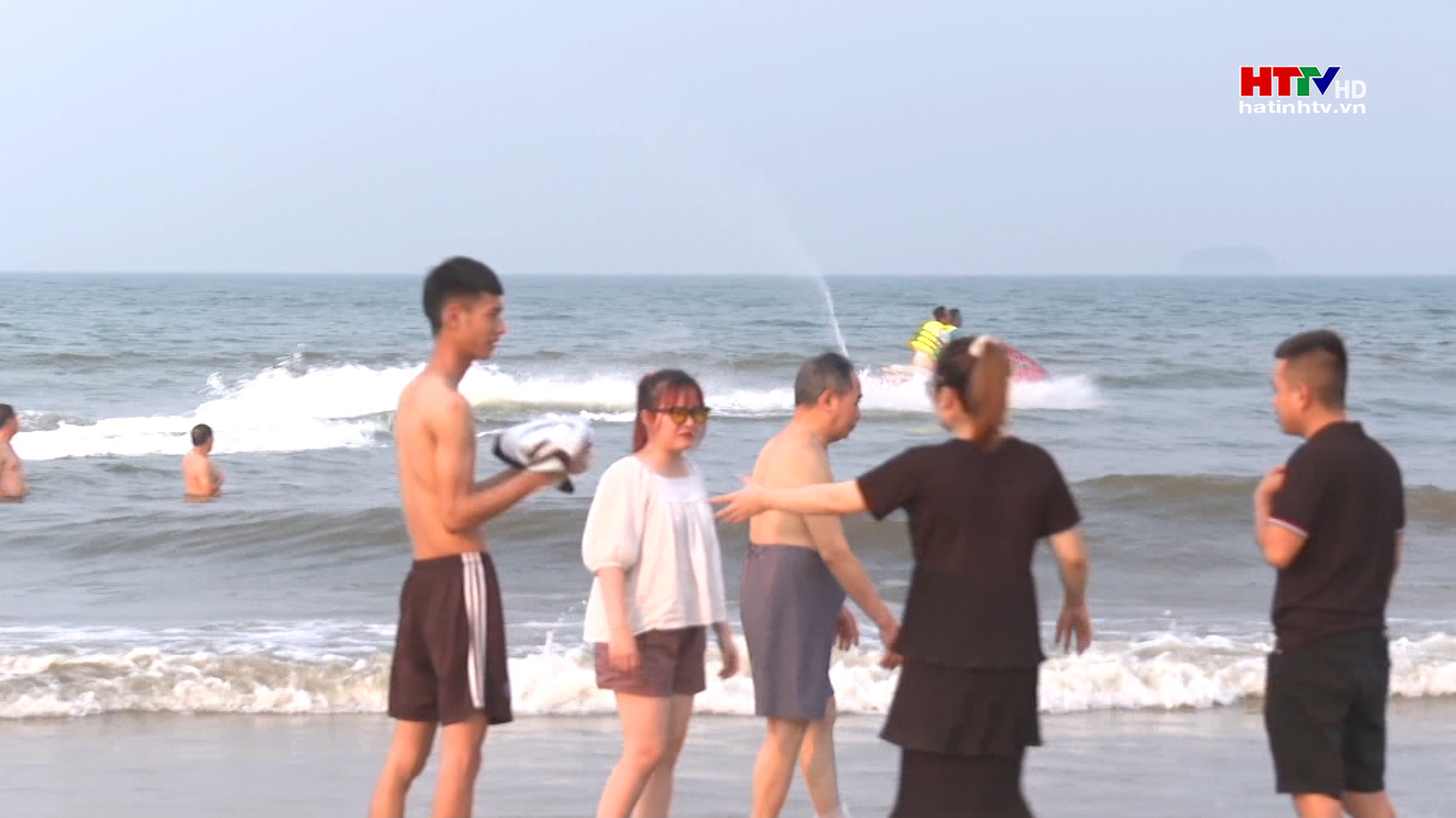 Du khách tắm biển tại Thiên Cầm