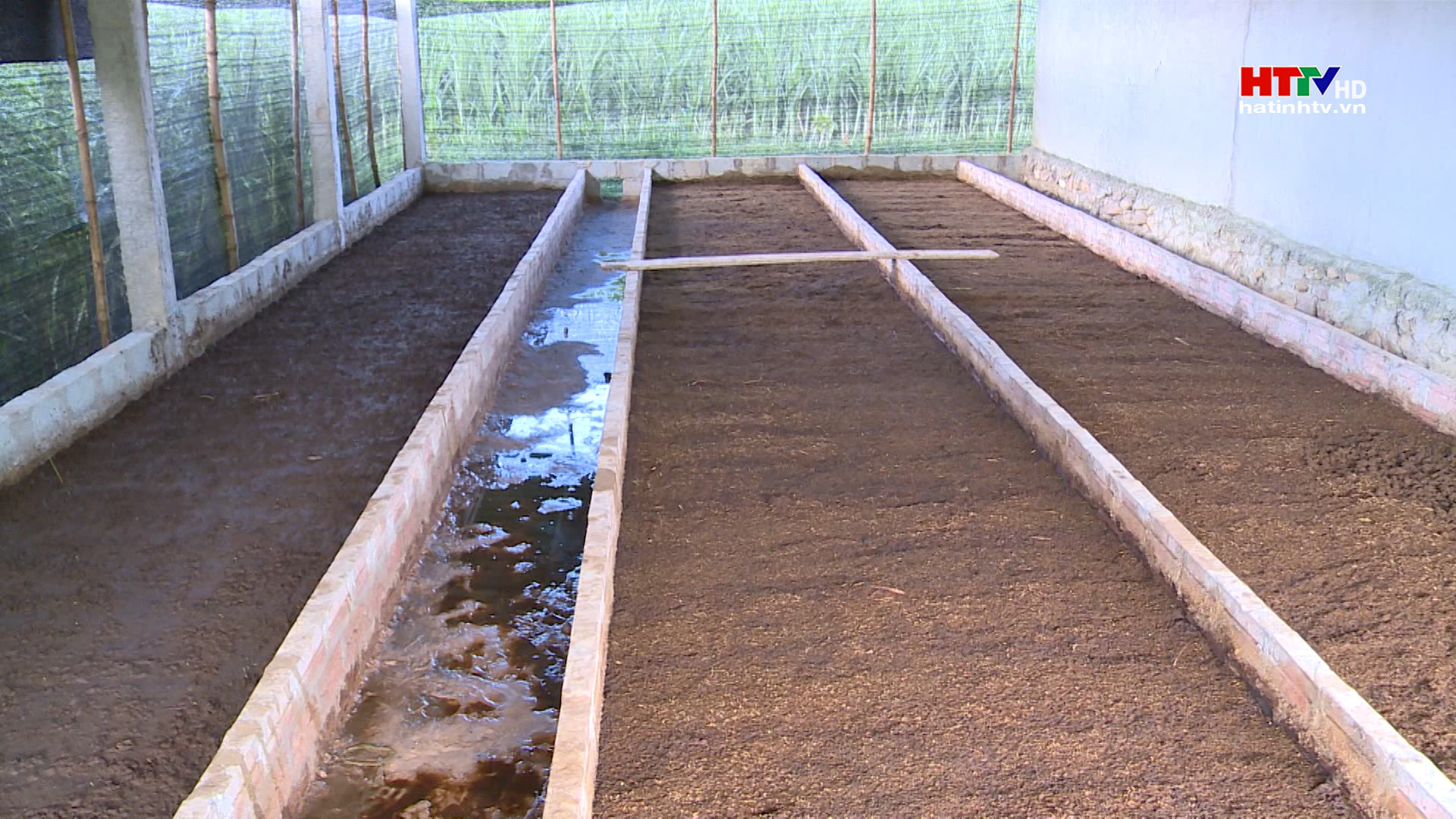 Tháng 4/2022, ông Cao Văn Hùng ở thôn Hoà Sơn, xã Cẩm Thịnh, huyện Cẩm Xuyên đầu tư xây dựng chuồng trại để ủ phân nuôi giun quế. Theo ông Hùng, trên diện tích 70m2, mô hình này đã giải quyết được lượng lớn phân do đàn bò 30 con thải ra mỗi ngày.