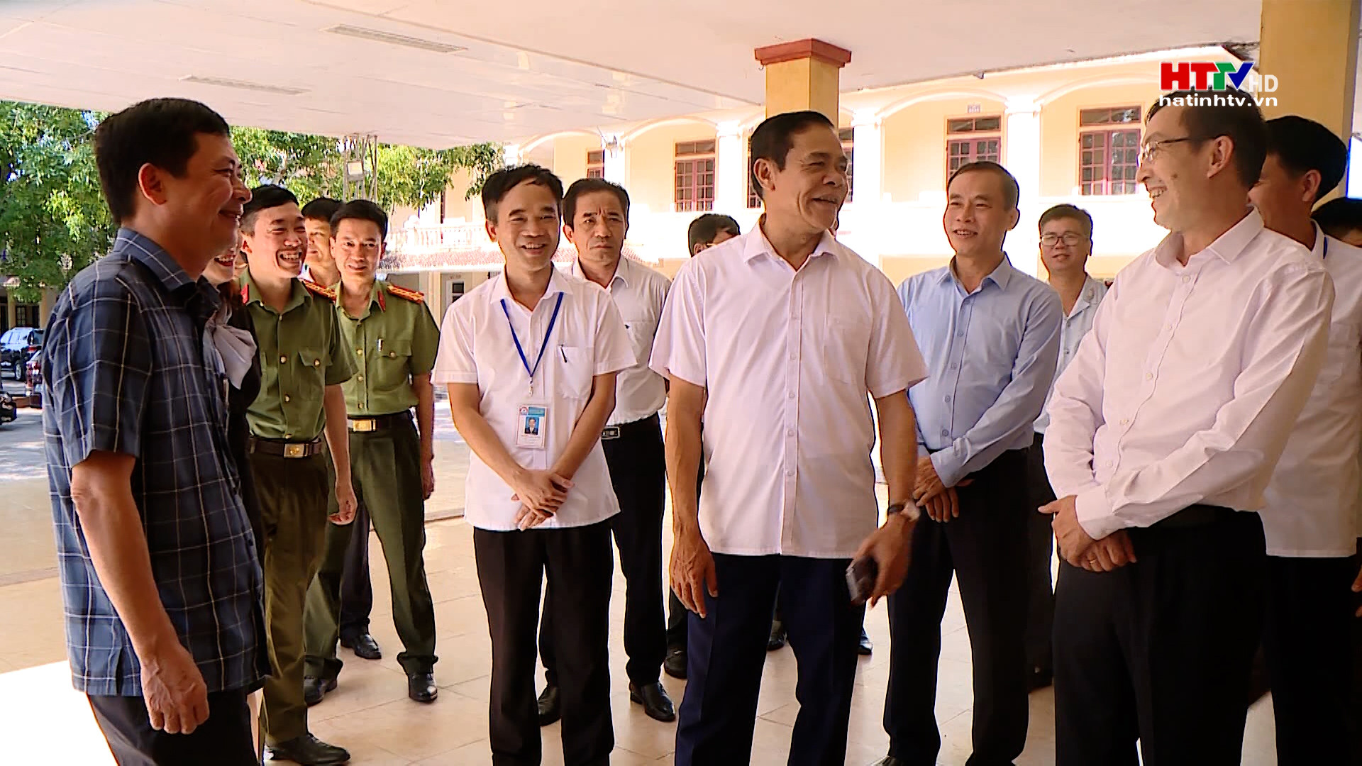 Các đồng chí lãnh đạo UBND tĩnh Hà Tĩnh kiểm tra công tác chuẩn bị tuyển sinh lớp 10 tại huyện Can Lộc