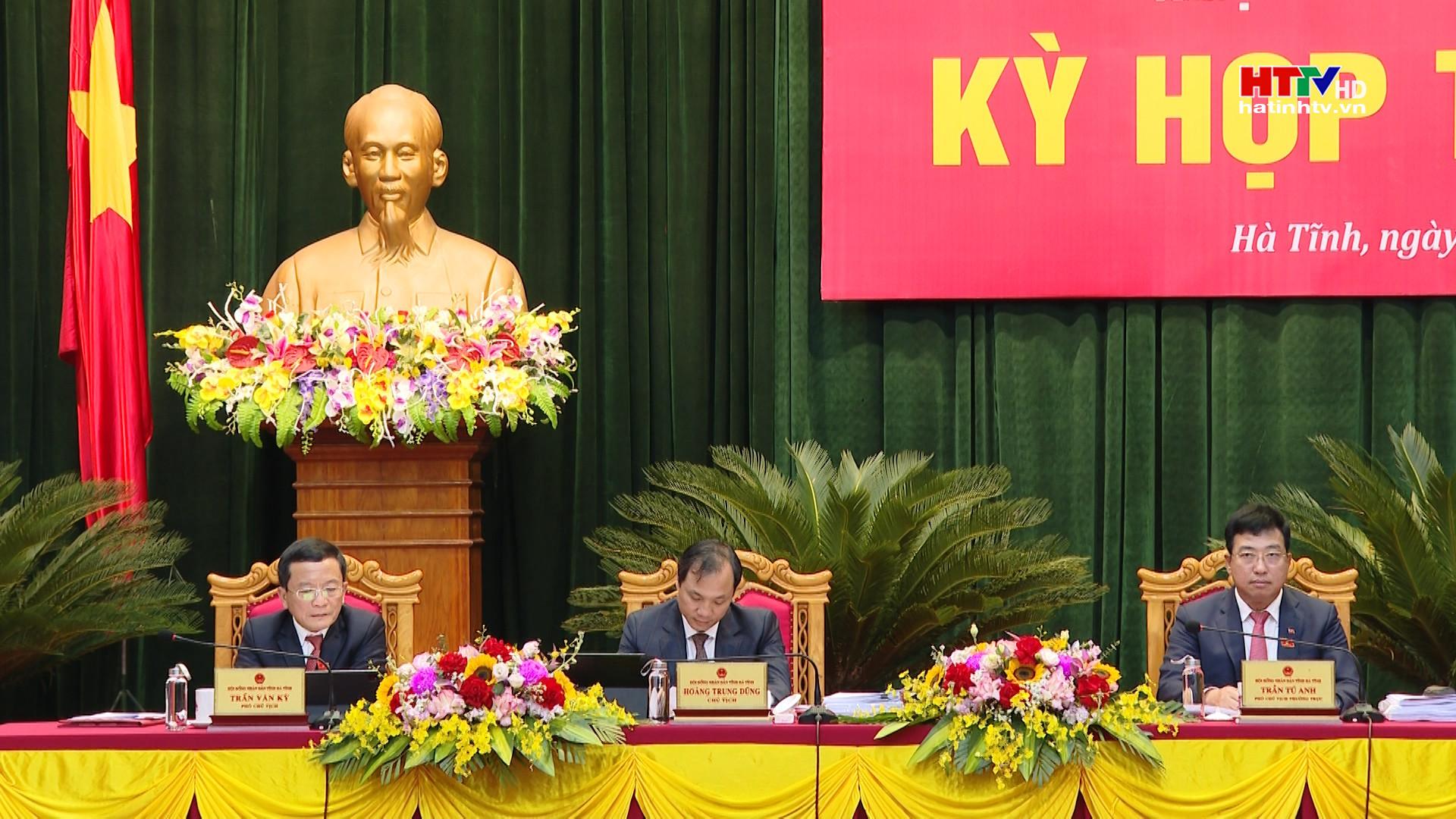 Đồng chí Hoàng Trung Dũng - Uỷ viên Trung ương Đảng, Bí thư Tỉnh ủy, Chủ tịch HĐND tỉnh; đồng chí Trần Tú Anh- Uỷ viên BTV Tỉnh ủy, Phó Chủ tịch Thường trực HĐND tỉnh và đồng chí Trần Văn Kỳ - Phó Chủ tịch HĐND tỉnh chủ trì và điều hành kỳ họp.