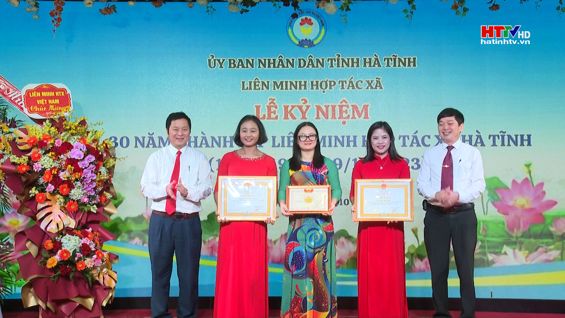 Phát biểu tại lễ kỷ niệm, đồng chí Lê Văn Nghị - Phó Chủ tịch Liên minh Hợp tác xã Việt Nam và đồng chí Trần Thế Dũng - Phó Bí thư Thường trực Tỉnh uỷ ghi nhận những kết quả mà Liên minh hợp tác xã Hà Tĩnh, và các tổ chức kinh tế tập thể của tỉnh đạt được trong 30 năm qua.