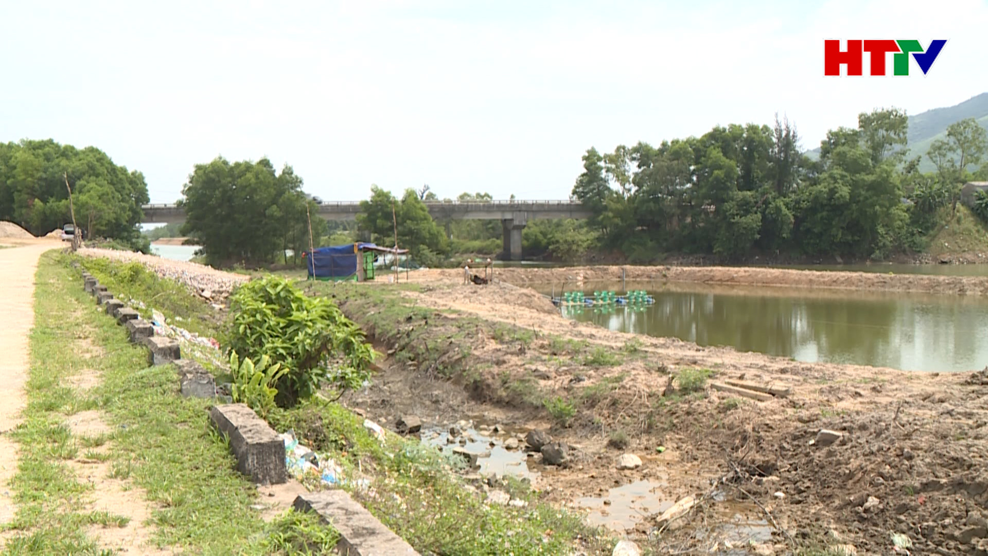 Tại khu vực cầu sông Rác thuộc địa bàn thôn Nam Trung, xã Cẩm Trung, huyện Cẩm Xuyên, hoạt động nuôi tôm diễn ra hoàn toàn tự phát. Tại khu vực này các hộ dân đã thuê máy ủi, đào đắp thành các hồ với diện tích khác nhau để nuôi tôm.