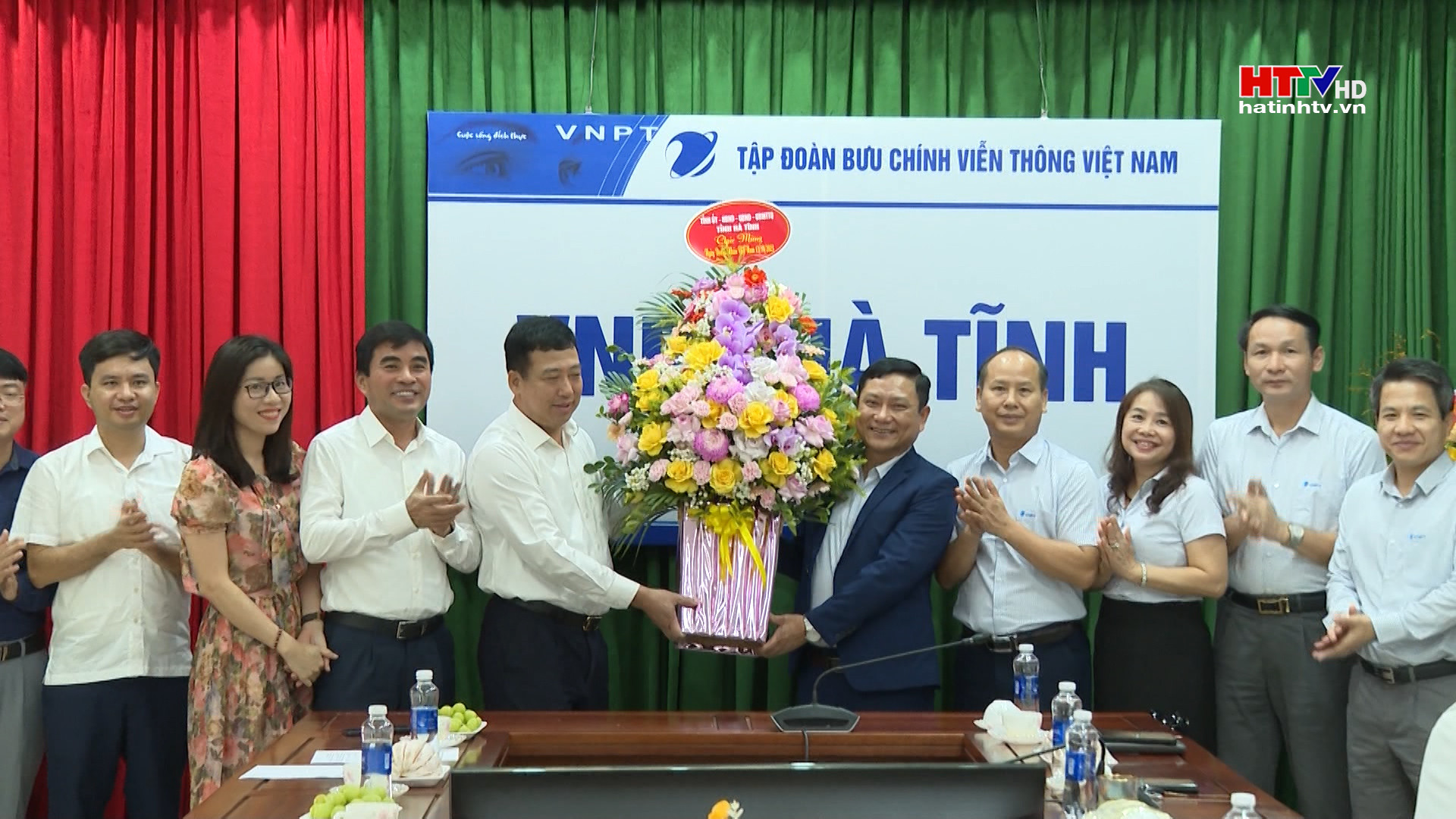 Đến tặng hoa, chúc mừng Bưu điện tỉnh, Trường mần non Trung Kiên thuộc Công ty Cổ phần Tập đoàn Đức Thắng, Bệnh viện Đa khoa TTH Hà Tĩnh và Hợp tác xã Nông nghiệp và dịch vụ tổng hợp Bắc Sơn, xã Lưu Vĩnh Sơn, huyện Thạch Hà, đồng chí Lê Ngọc Châu - Phó Chủ tịch UBND tỉnh đánh giá cao những đóng góp của các đơn vị, doanh nghiệp trong hoạt động sản xuất, kinh doanh, phát triển giáo dục, chăm sóc sức khoẻ Nhân dân, đảm bảo an sinh xã hội.