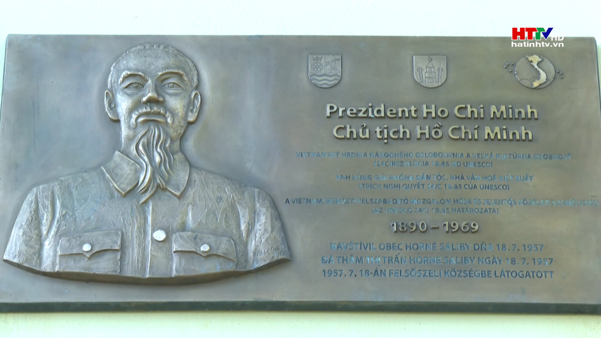 Biển đồng lưu niệm Chủ tịch Hồ Chí Minh được đặt tại thị trấn Horne Saliby, tỉnh Trnava, Slovakia