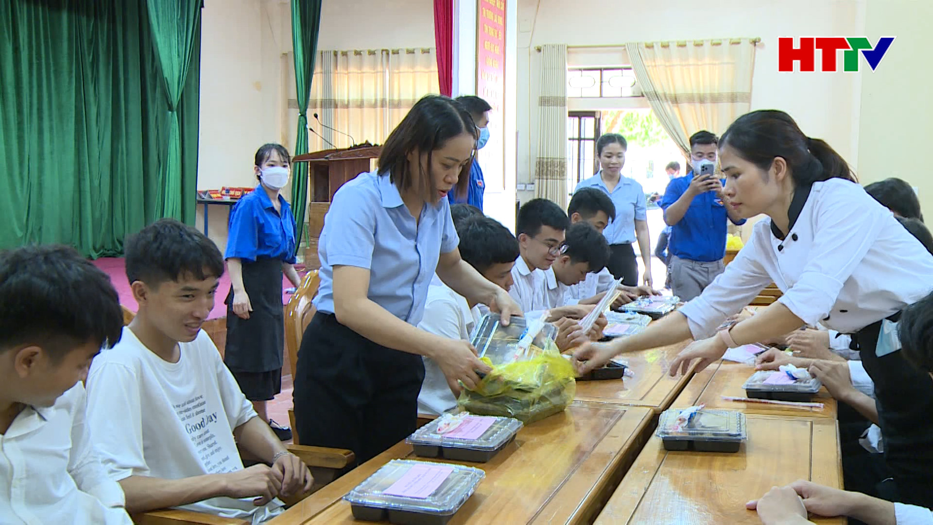 Còn đây là những suất cơm trưa được các Đoàn viên Công đoàn, Đoàn thanh niên Trường Trung cấp nghề Hà Tĩnh, chuẩn bị cho các thí sinh nhà ở xa đến thi tại điểm thi Trường THPT Chuyên Hà Tĩnh.