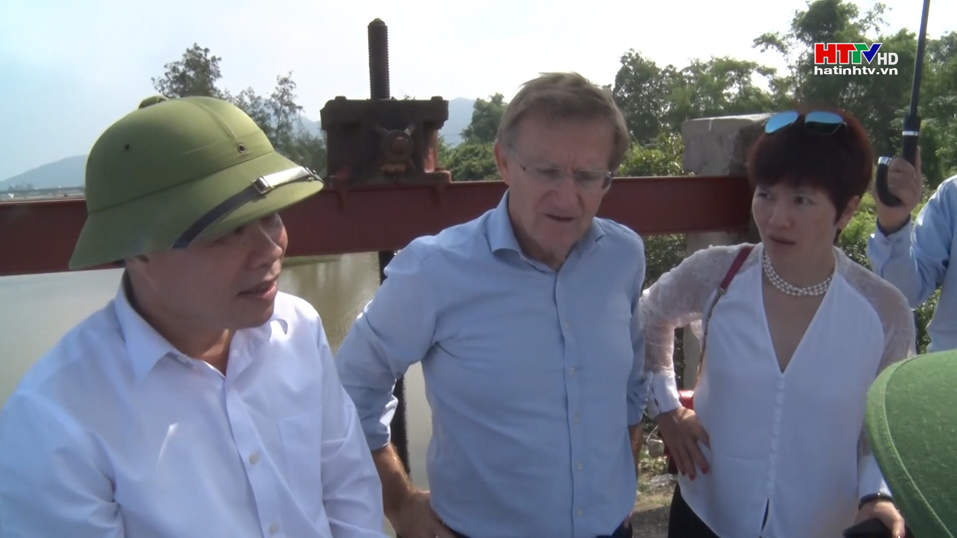 Ông Hervé Conan - Giám đốc Cơ quan phát triển Pháp tại Việt Nam (giữa) đi khảo sát thực địa tại thị xã Kỳ Anh