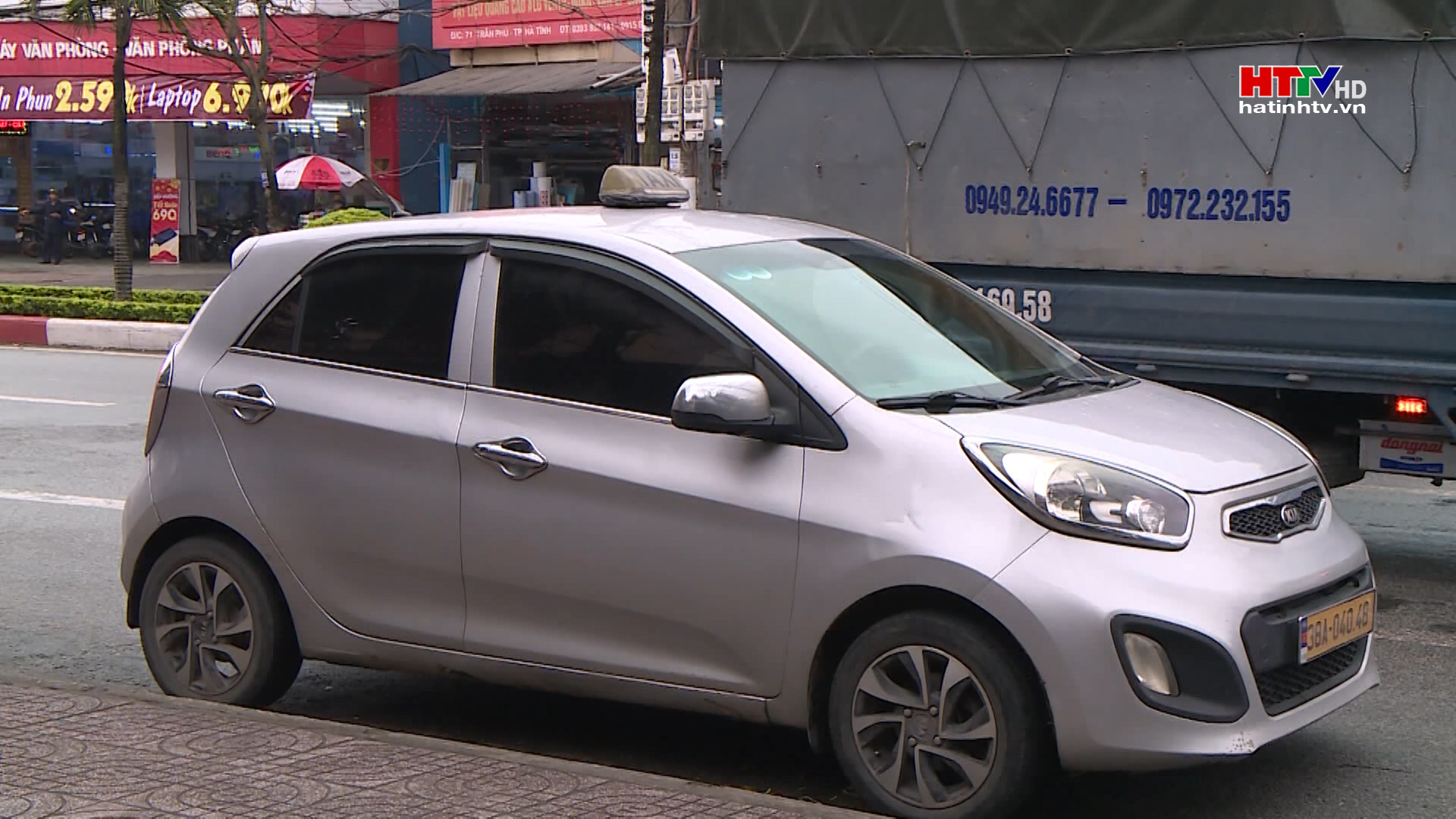 Tại tuyến đường Trần Phú, thành phố Hà Tĩnh trên chiều dài khoảng 300 mét, có đến 3 xe tắc xi “dù” đang dừng đậu. Những xe này nhìn chung là cũ nát không dám chắc đảm bảo các thông số kỹ thuật an toàn, nhưng vẫn lắp đèn tín hiệu, in biển bảng tắc xi để đón khách.