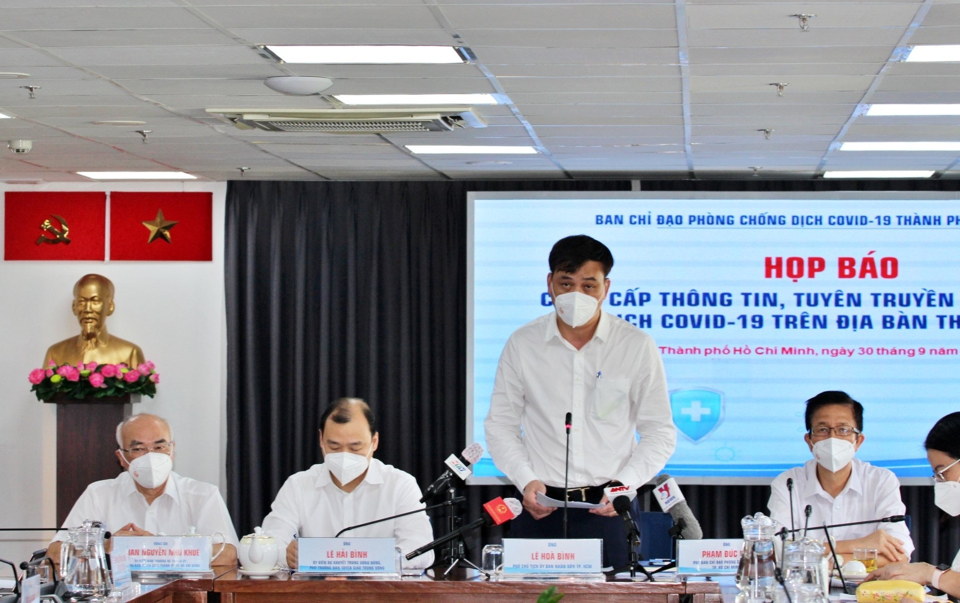 Tại buổi họp, Phó Chủ tịch UBND TPHCM Lê Hòa Bình đã công bố Chỉ thị của UBND TPHCM "Tiếp tục kiểm soát, điều chỉnh các biện pháp phòng, chống dịch COVID-19 và từng bước phục hồi, phát triển kinh tế-xã hội trên địa bàn Thành phố". Sáng nay (30/9), BCĐ phòng, chống dịch COVID-19 TPHCM tổ chức họp cung cấp thông tin, tuyên truyền phòng, chống dịch COVID-19 tại Thành phố.