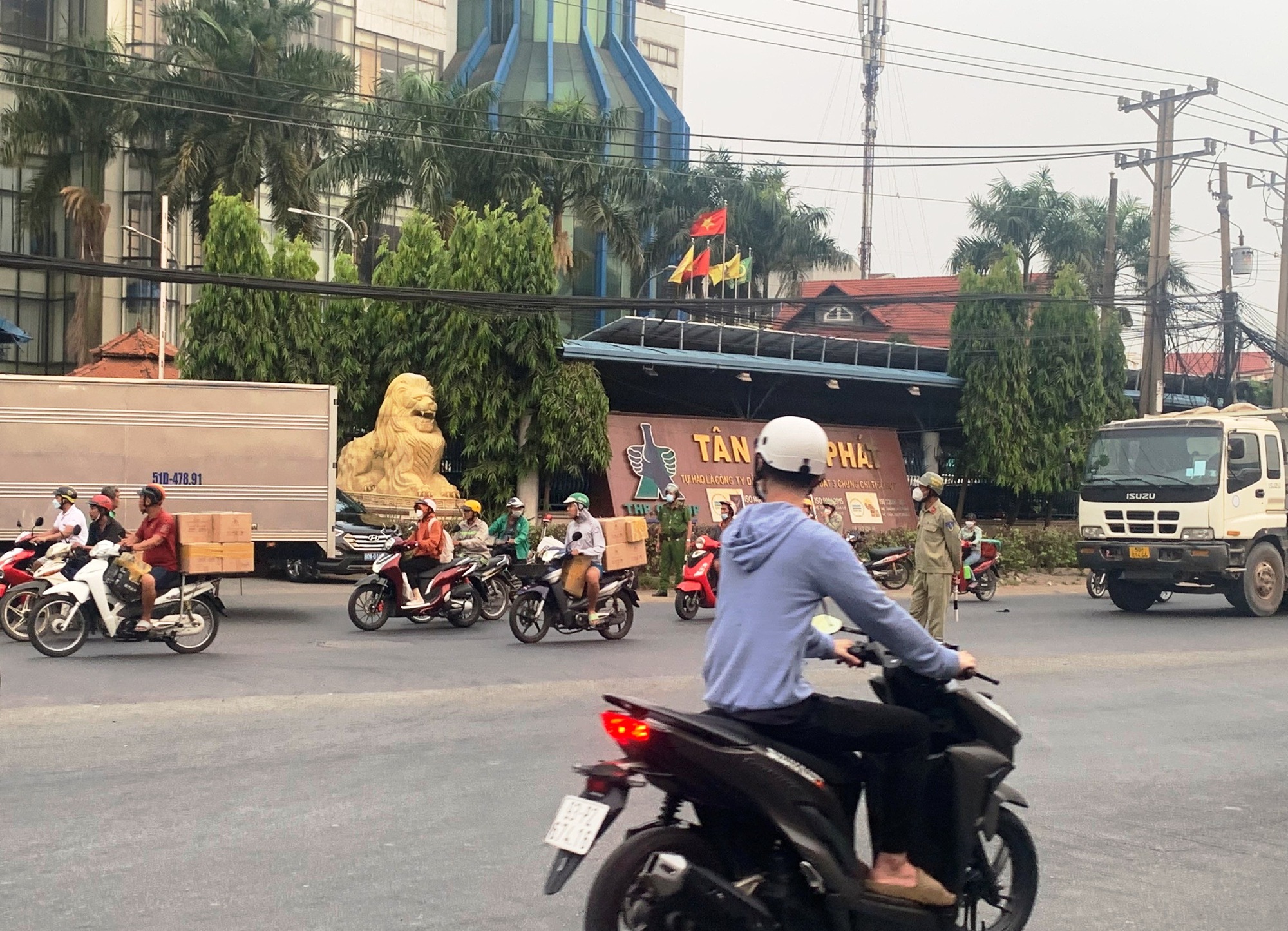 Lực lượng Công an đang làm việc tại trụ sở Công ty TNHH thương mại, dịch vụ Tân Hiệp Phát, trên quốc lộ 13, tỉnh Bình Dương chiều ngày 10/4 - Ảnh: VGP